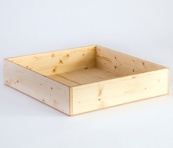Die Krabbelkiste ist ca. 18cm hoch und wird umgedreht zu einem Podest. An das Podest angebaut befinden sich zwei bis drei schiefe Ebenen, die sich durch ihre Oberflächenbeschaffenheit unterscheiden. In meinem SpielRaum findest du eine Ebene mit einem Teppich, eine aus Holz und eine mit einer glatten, rutschigen Oberfläche.