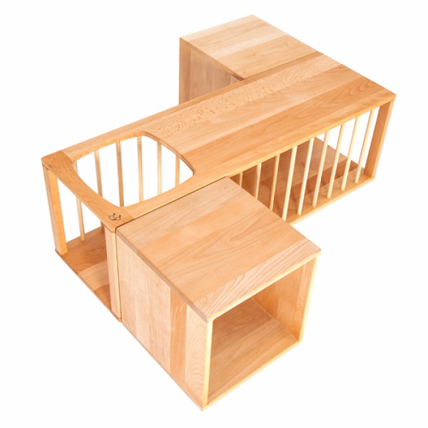 Schon sehr junge Kinder interessieren sich für Stufen und Erhöhungen. Das Podest bietet durch seine Größe genügend Möglichkeiten, sicher rauf und runter zu krabbeln. Die schrägen Ebenen werden gerne zum Rutschen verwendet. Eine freudige Herausforderung ist die Schräge für das Kind, das erst Gehen gelernt hat. Ältere Kinder beobachte ich dabei, wie sie das Stufensteigen ohne Anhalten auf dem Podest üben.