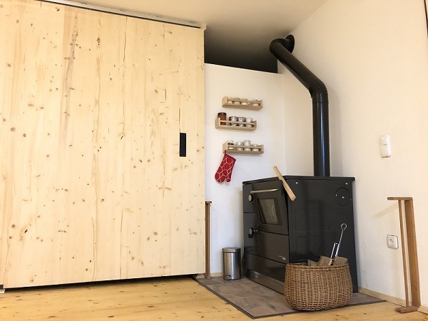 Im Kellergeschoss meines Hauses habe ich für dich und dein Kind einen gemütlichen, hellen Raum eingerichtet. Darin befindet sich ein Holzofen, dessen Umgebung mit einem Schutzgitter gesichert ist und der für eine gemütliche Wärme sorgt. Zwei Fenster geben einen kleinen Ausblick in den Garten frei und am Vormittag finden auch einige Sonnenstrahlen ihren Weg in den Raum.